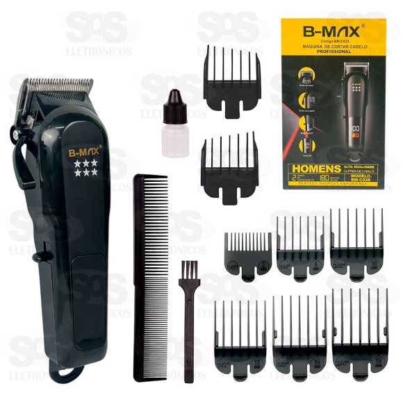 Máquina de Cortar Cabelo 8 Pentes Com Painel B-Max BM-C028