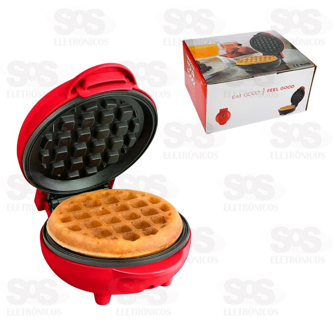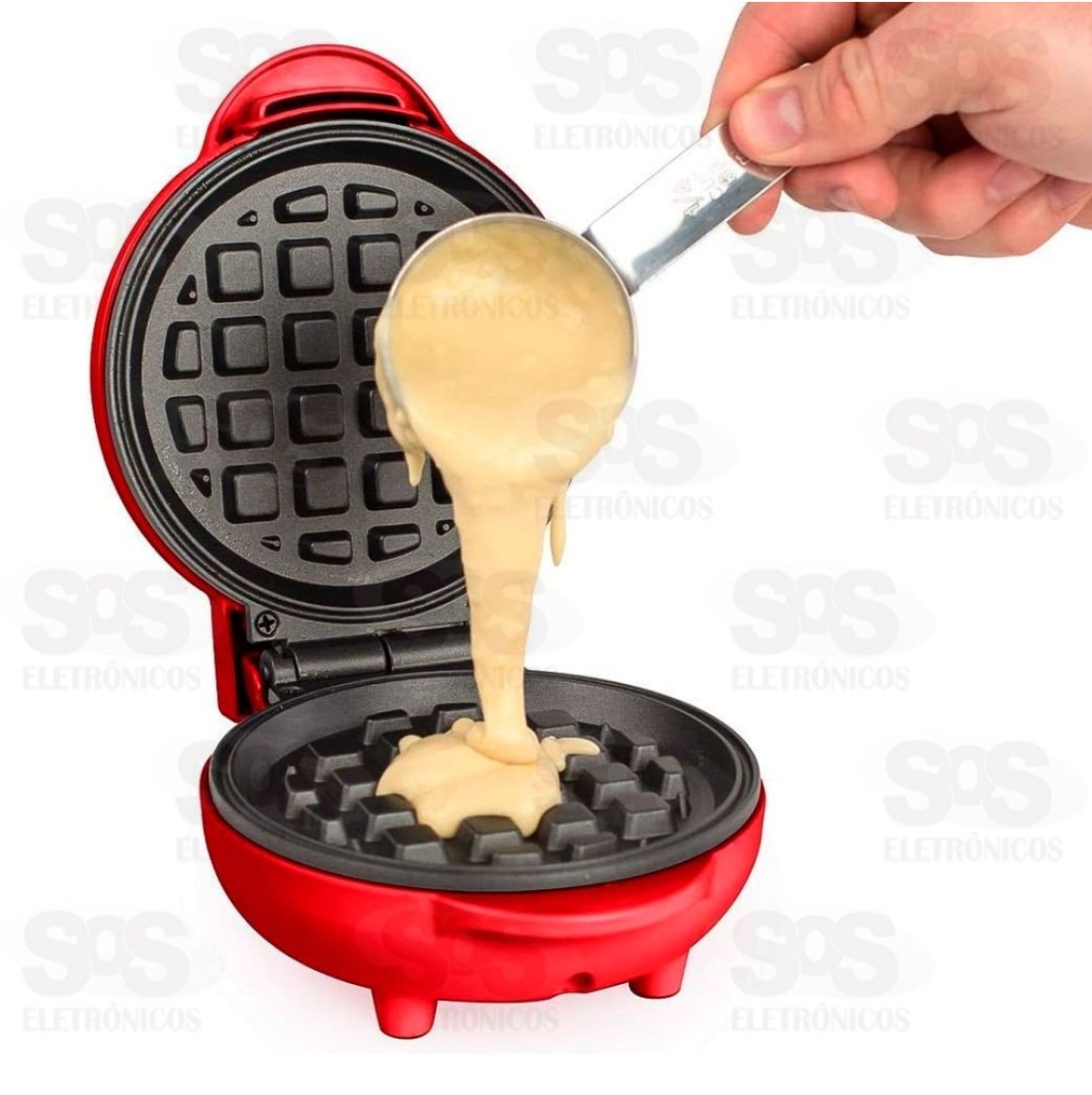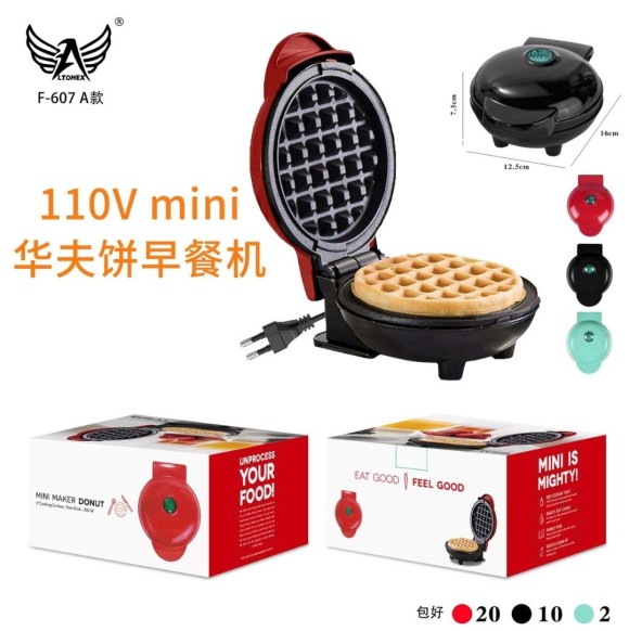 Mini máquina para preparar deliciosos waffles, perfeito para café da manhã ou lanche da tarde.