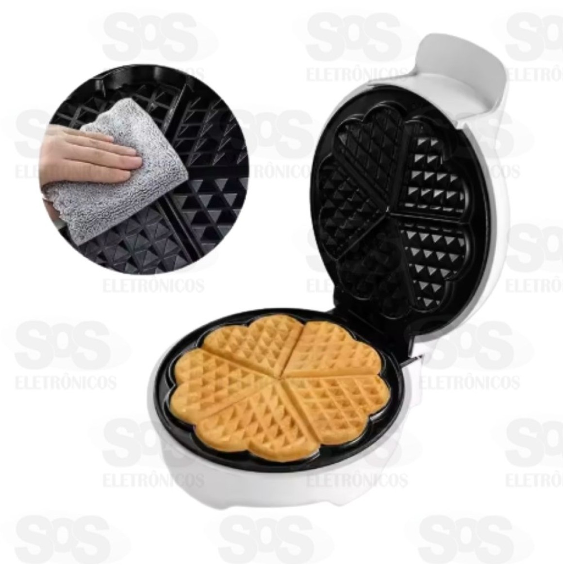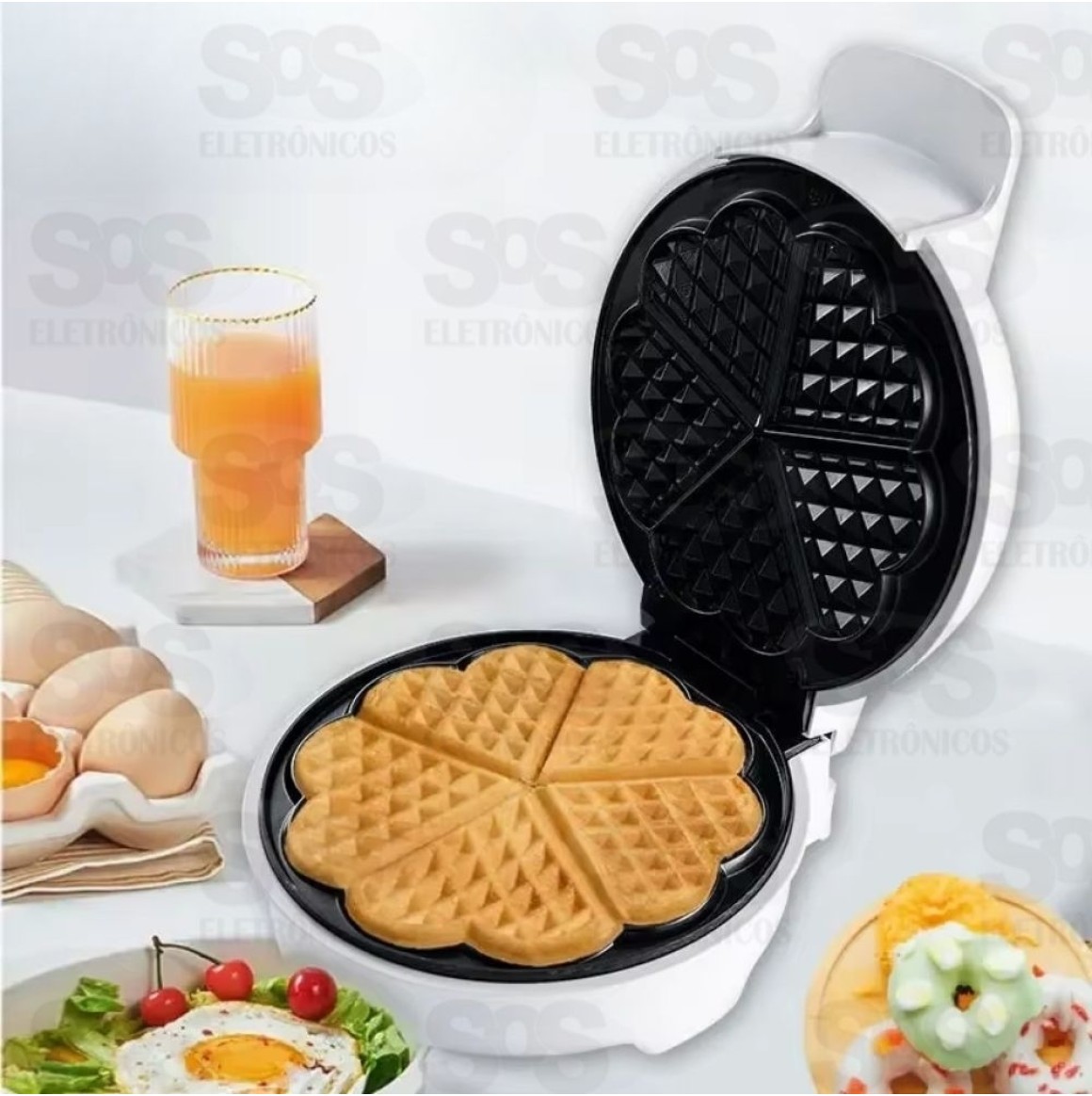 Mini máquina para preparar deliciosos waffles em formato de coração, perfeito para café da manhã ou lanche da tarde.