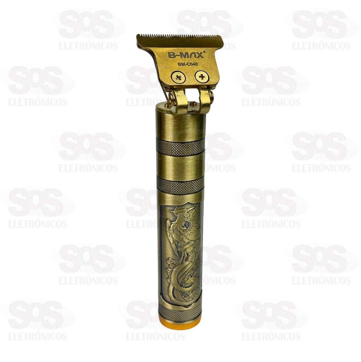 Máquina Para Acabamentos Recarregável Dragão B-Max BM-C040 Máquina ideal para acabamentos e desenhos em cabelo e barba. Motor de alta potência e durabilidade, em formato de T. Design moderno e elegante com desenho de dragão, muito linda. Lâmina de titânio que não irrita a pele. Bateria recarregável que garante até 180 minutos de uso contínuo. Acompanha 4 pentes de limite, sendo eles de 4mm, 3mm, 2mm e 1,5mm. Com botão liga/desliga. Tamanho: 14,5 x 4 cm