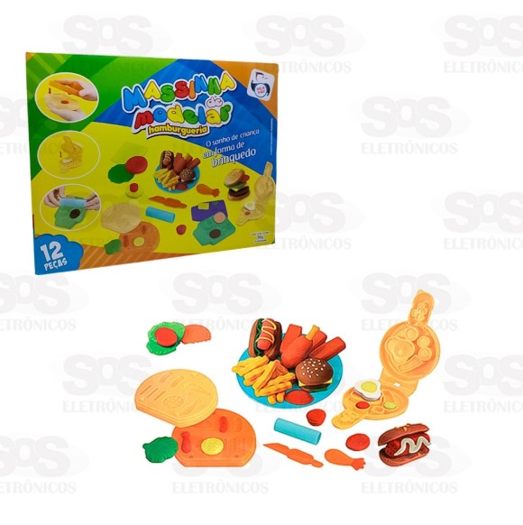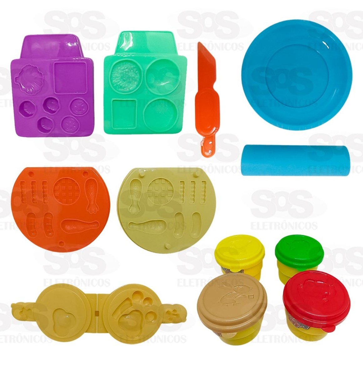 Que tal preparar aquelas delícias de massinha para encantar a todos? O produto vem com cores de massinhas - que misturadas podem formar novas cores - e diversos acessórios do tema hamburguer para se divertir!