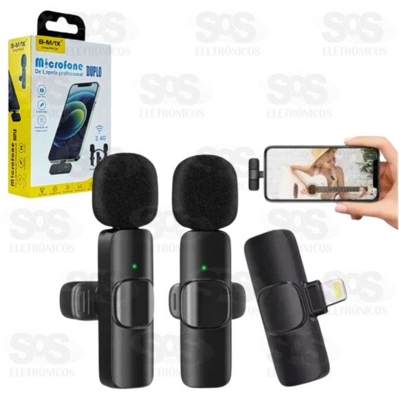 Microfone Duplo De Lapela Sem Fio Recarregável Iphone B-Max BM-230