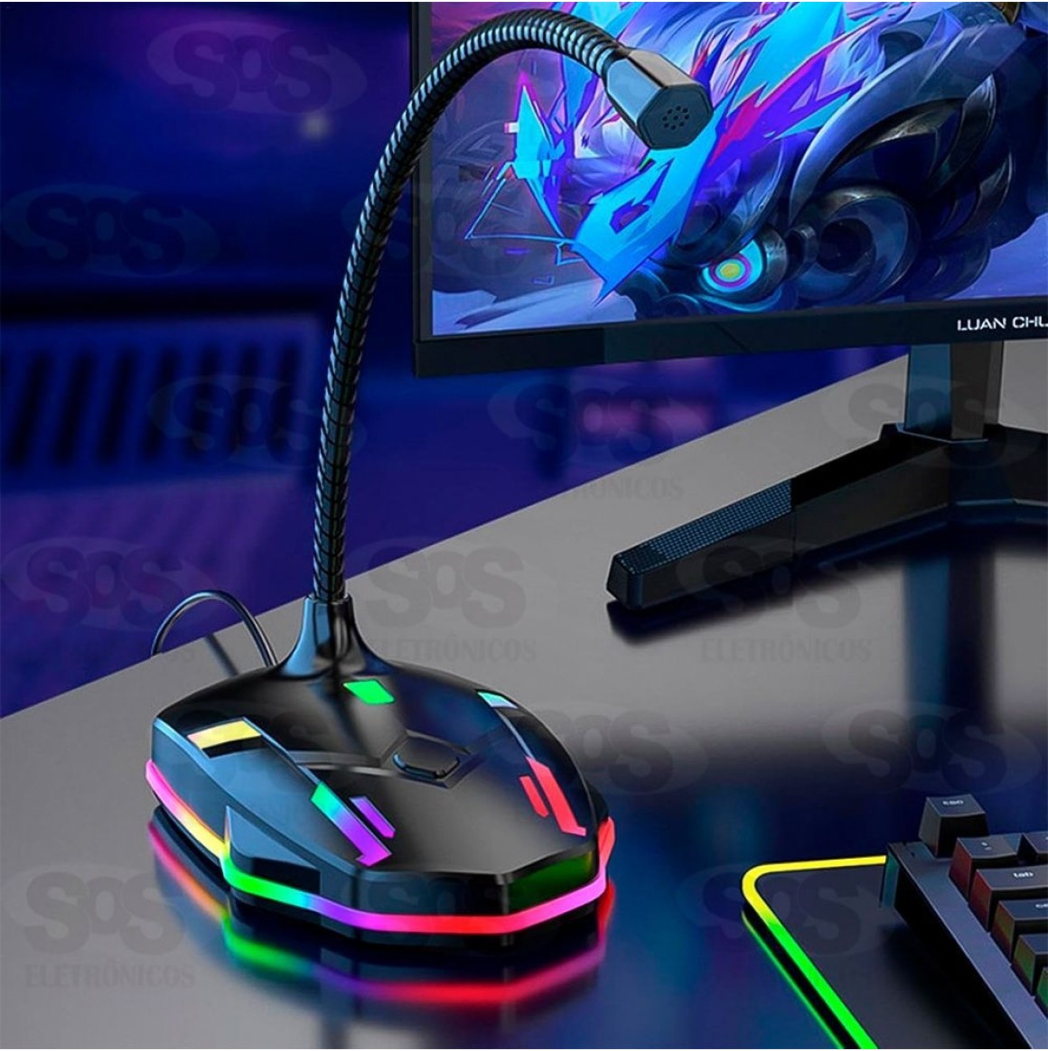 Microfone de mesa com luzes RGB, ideal para jogos ou para usar no dia a dia.