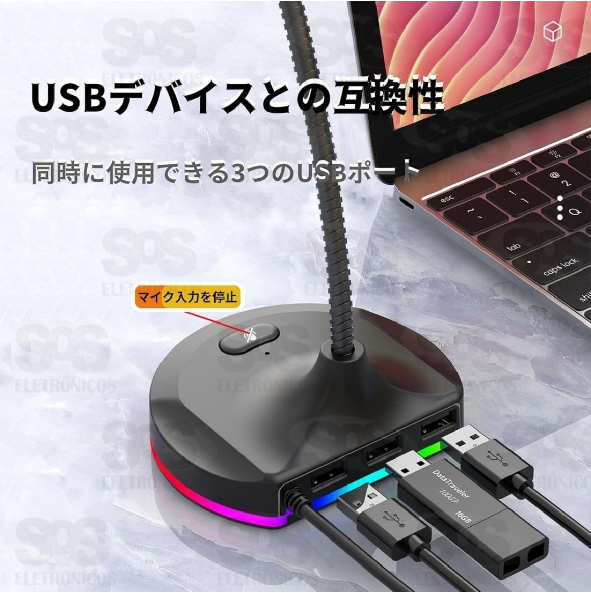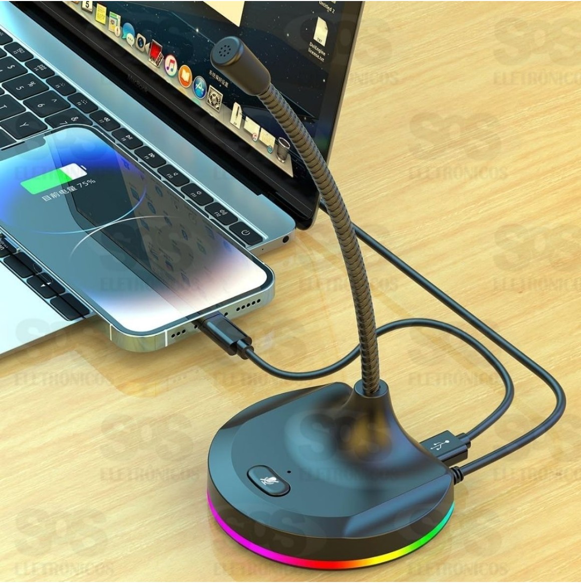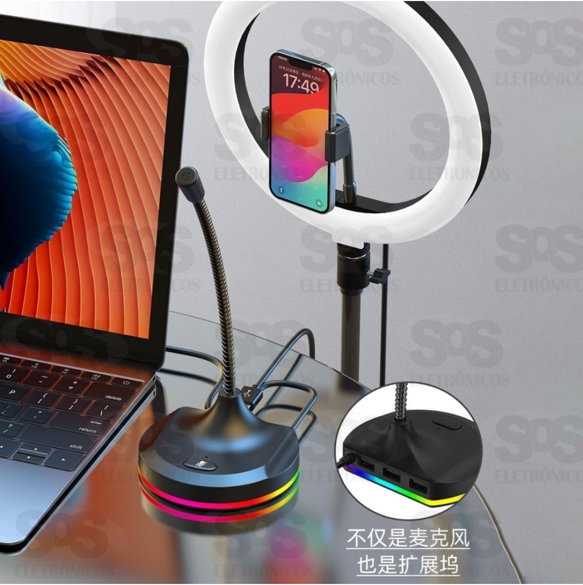 Microfone Gamer de Mesa Com Hub 3 USB AL-M66