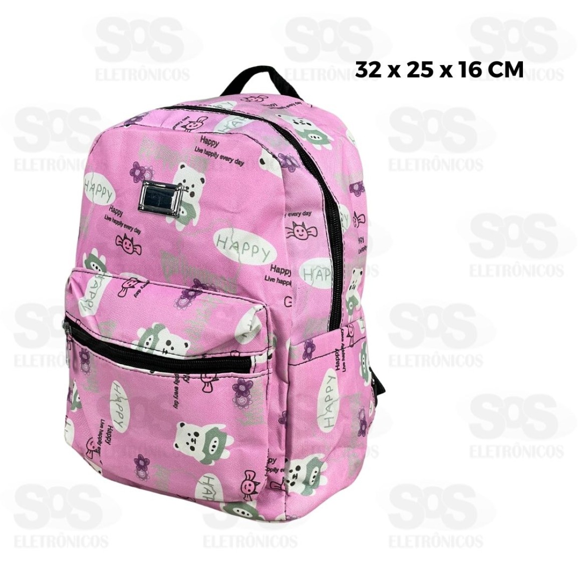 Mochila Feminina 4 Bolsos Estampas Fofinhas Altomex AL-07-0521 Linda mochila feminina com 4 bolsos, sendo 2 zíperes e 2 laterais Zíperes metálicos Material de alta qualidade Alças reguláveis Tamanho: 32 x 25 x 16 cm Cores e estampas variadas