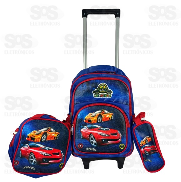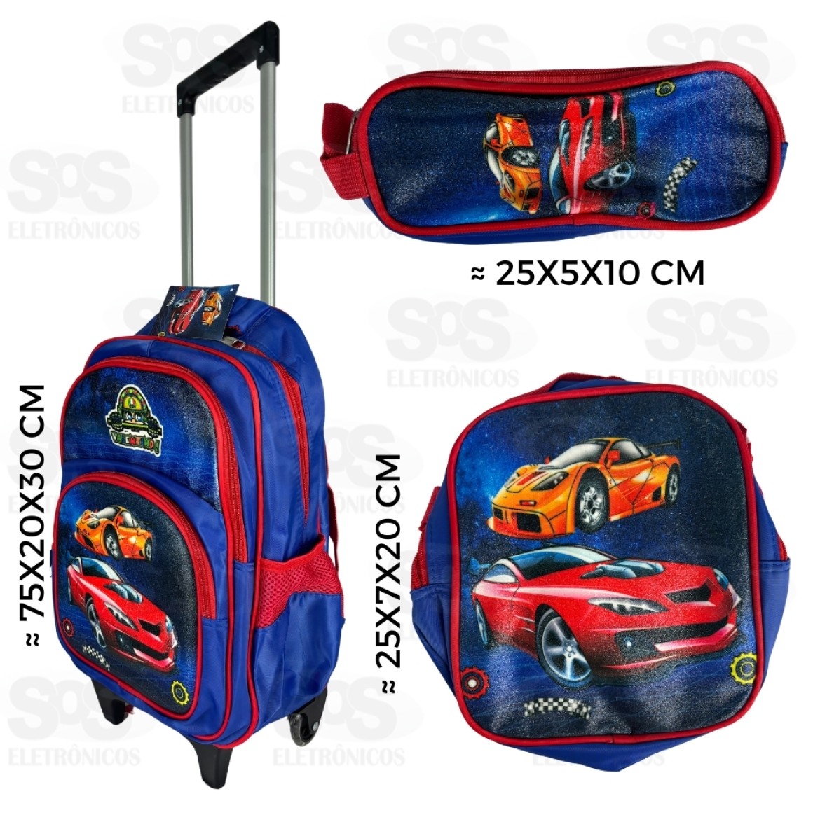 Mochila Infantil GG Com Estojo e Lancheira 3D Carros Speed FUK367
