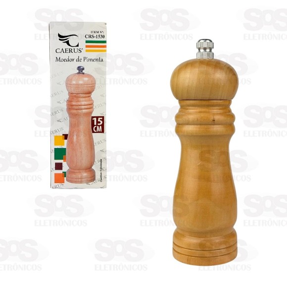 Moedor de Pimenta Manual Madeira Caerus CRS-1530 Item muito utilizado em cozinhas para temperos de alimentos. Feito de madeira de alta qualidade. Tamanho: 15 x 4,5 cm