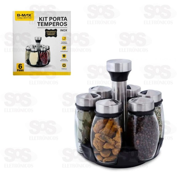 Porta Temperos Base Giratória 6 Frascos B-Max BM-F1160