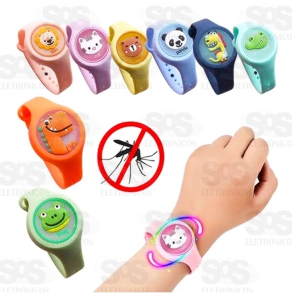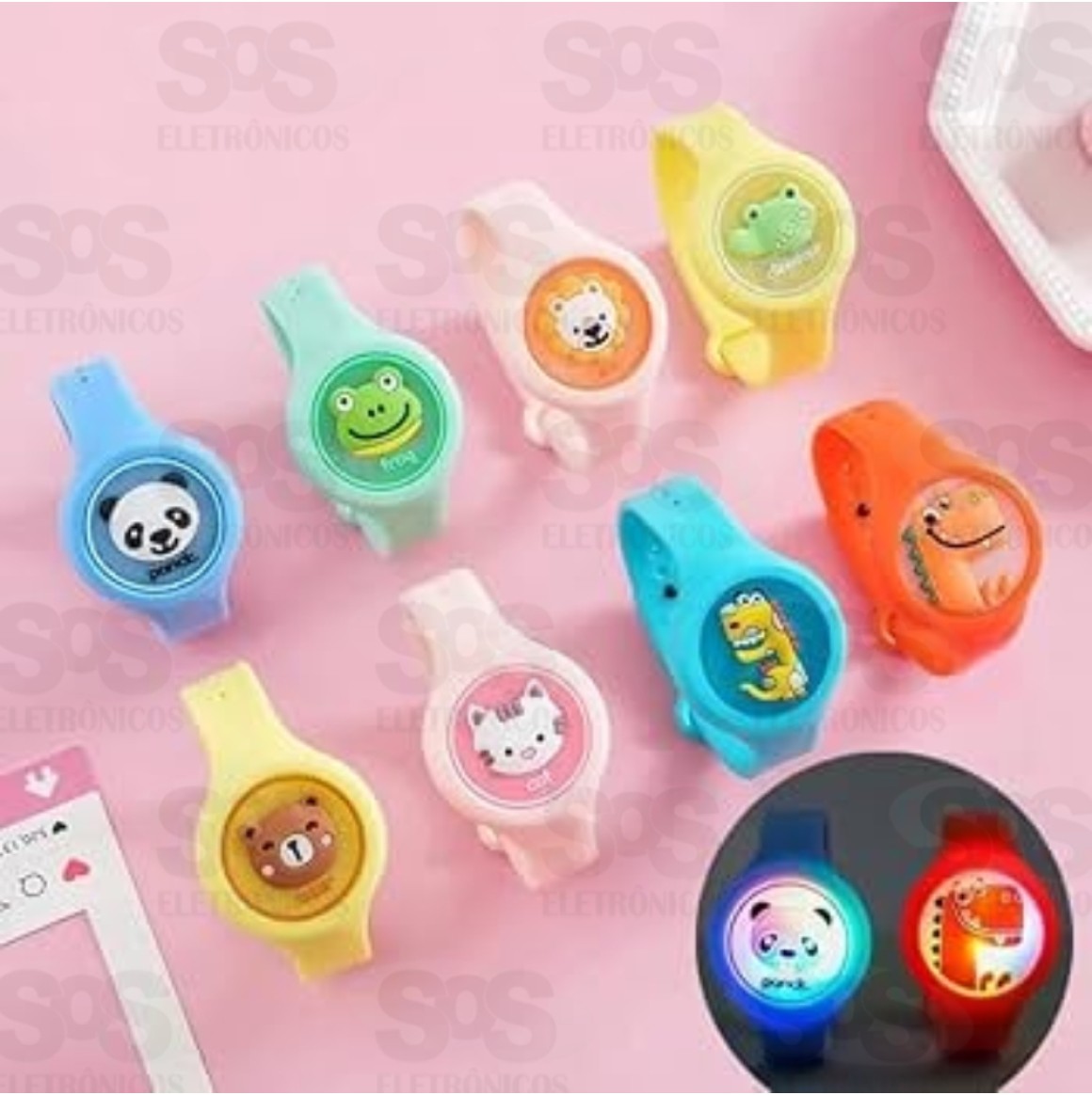 Pulseira Repelente Infantil Pisca Pisca PUL-1110 Pulseira brilha e tem proteção contra mosquito com cheiro de óleos essenciais repelentes Personagens sortidos Atenção NÃO É RELÓGIO