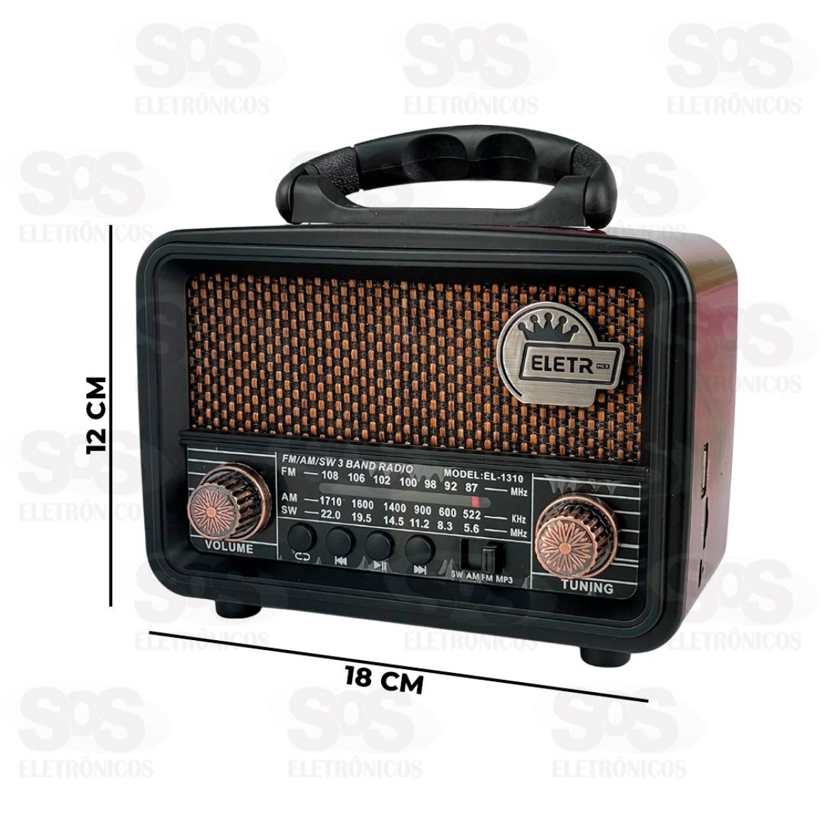 Rádio Clássico 3W FM/AM/SW/USB/BT/TWS Eletromex EL-1310