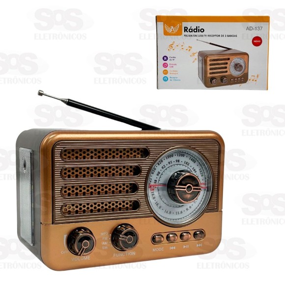 Rádio Retrô 3 Bandas Com Lanterna 5W Altomex AD-137