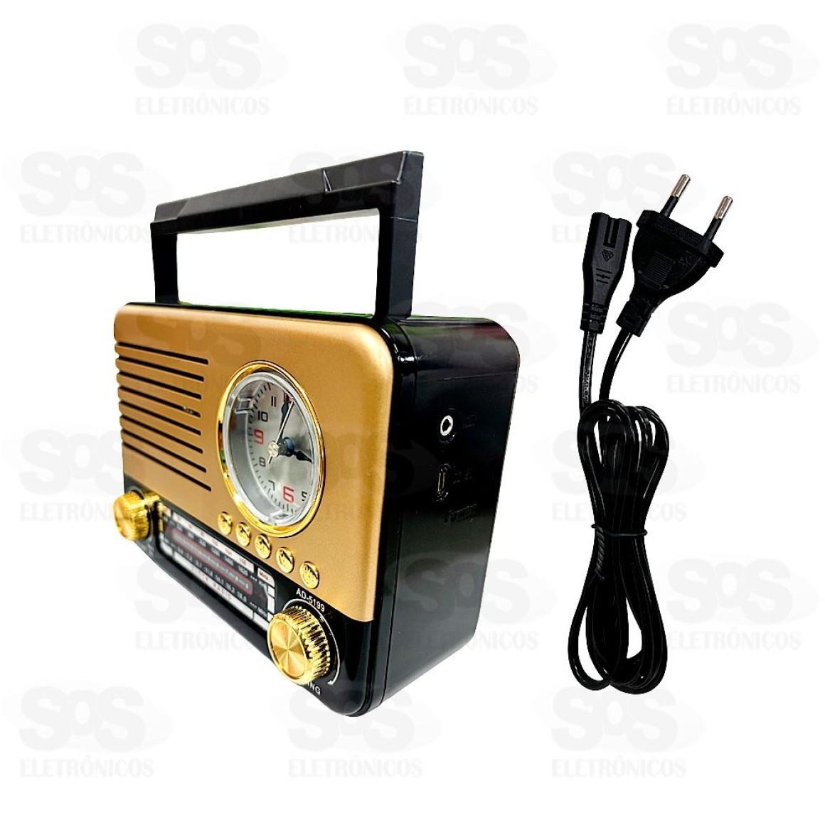 É notável pela sua excelente captação de sinal. Equipado com uma bateria recarregável, oferece não apenas ótima autonomia, mas também recursos adicionais, como relógio integrado e uma prática lanterna. Além disso, conta com entrada USB, leitor de cartão SD, cabo AUX e conectividade Bluetooth para uma experiência completa.