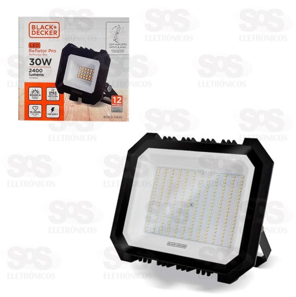 Refletor Pro Holofote LED Branco 30W IP65 Black+ Decker Esse refletor é ideal para quem quer ter uma iluminação de qualidade no jardim, fachada, piscina, parques, eventos e diversos outros locais. Até 80% mais econômico do que as lâmpadas comuns e também resistente à respingos de água. Super fácil de ser instalado, pode ser colocado na parede, chão ou teto. - Potência: 30W - Temperatura de cor: 6500K - Fluxo: 2400Im - Material: Alumínio - Cor: Branco frio - Ângulo de luz: 120° - Voltagem: 100V - 240V (Bivolt) - Proteção IP65 - Tamanho: 10 x 8,5 cm