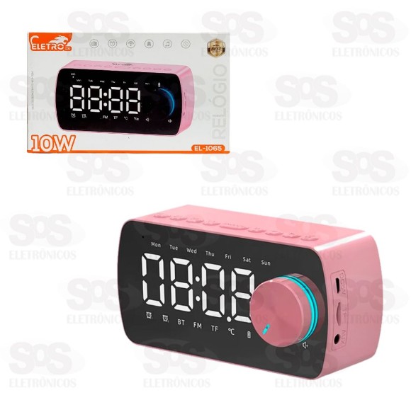 Relógio Despertador Com Caixa De Som 3W Eletromex EL-1065 Relógio digital com despertador e caixa de som, ideal para deixar ao lado da cama. Visor digital com números grandes de fácil visualização. Com conexão bluetooth e rádio FM, além de entradas para cabo AUX e cartão TF. Bateria recarregável via cabo micro V8. Muito fácil de ajustar. Frequência: 80Hz - 20KHz Potência total: 3W Tamanho: 13,5 x 6,5 x 4,5 cm Cores variadas