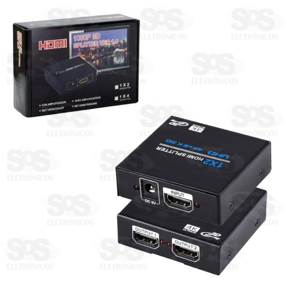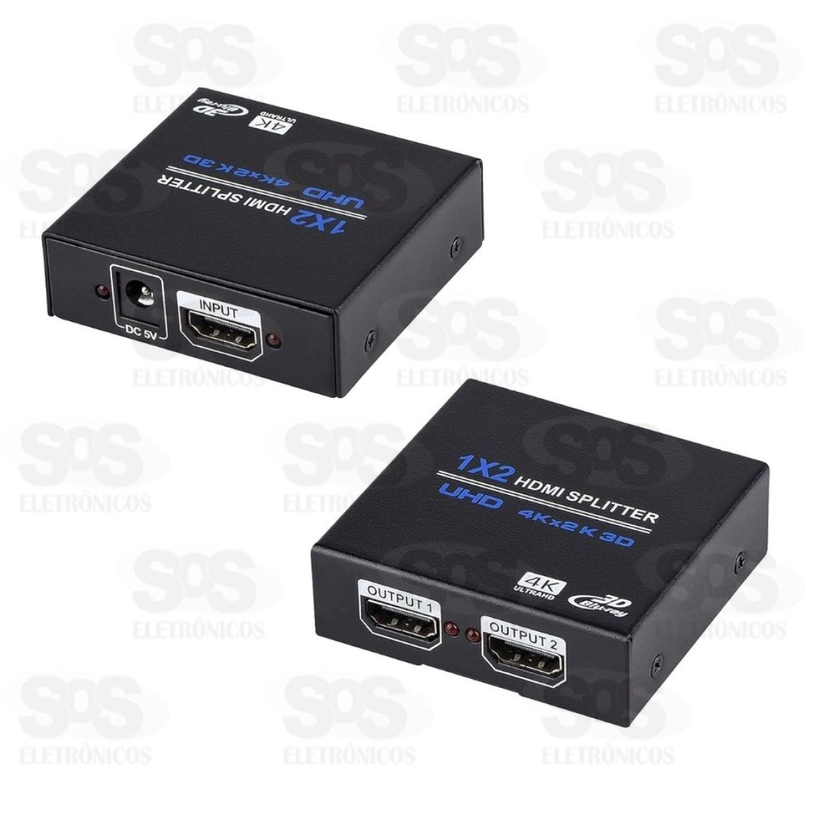 Splitter 1X2 HDMI 1 Entrada e 2 Saídas 1080P Com esse splitter é possível ligar 1 dispositivo com saída HDMI em até 2 monitores, tv e telas, mantendo a alta qualidade de áudio e vídeo. Todos os monitores mostrarão o mesmo vídeo e áudio simultaneamente. As portas de entrada e saídas anti-oxidação e anticorrosão fornece transmissões de sinal estáveis. Suporta resolução até 1080p. Sistema plug and play. Acompanha fonte de alimentação.