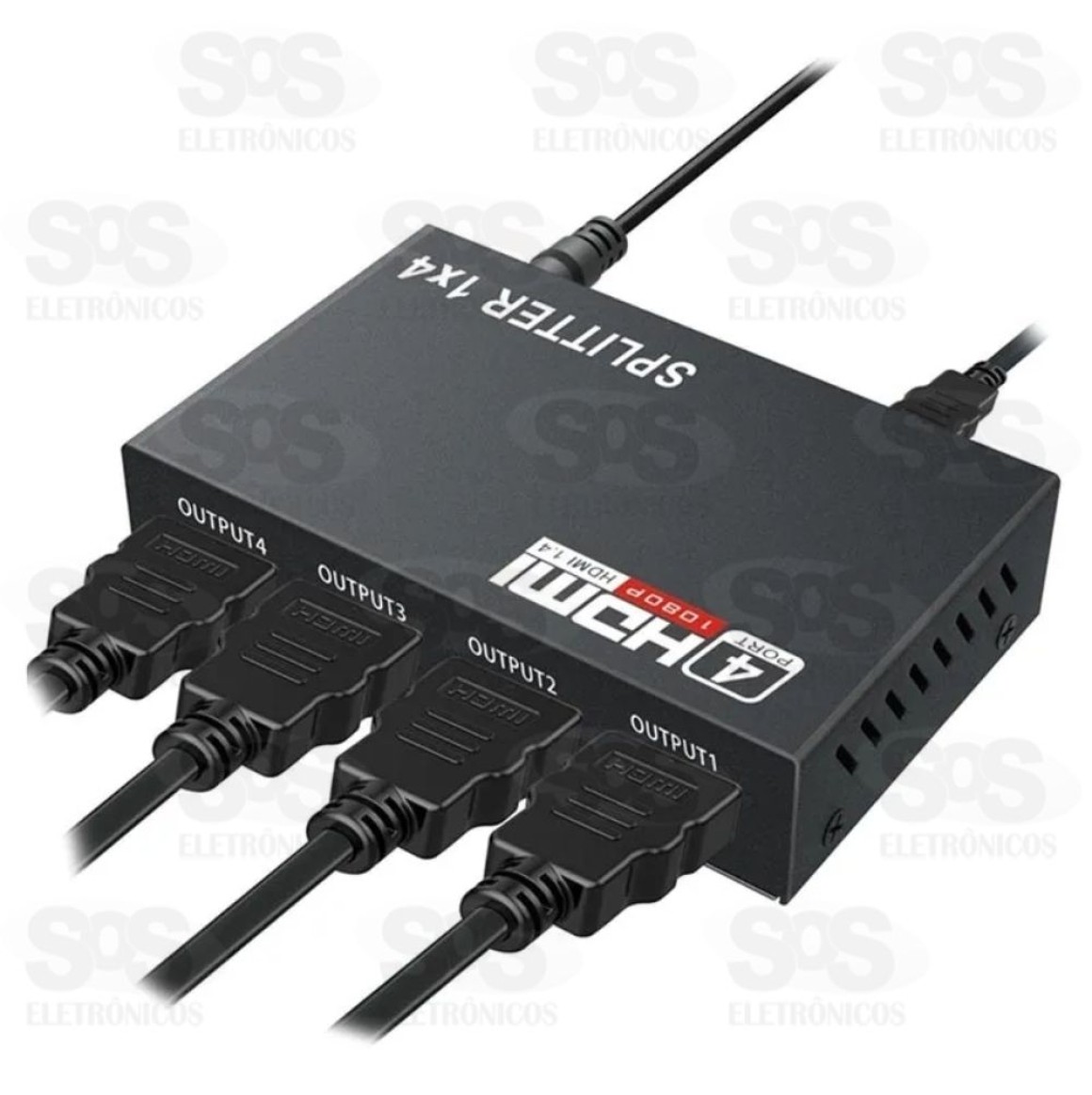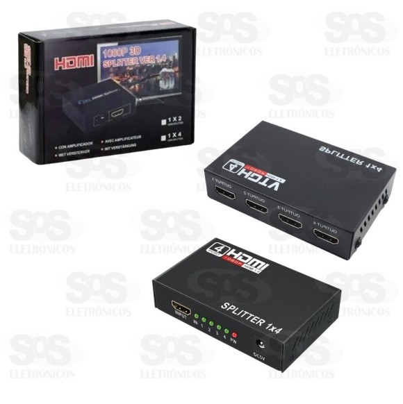 Splitter 1 Entrada e 4 Saídas HDMI 1080P Com esse splitter é possível ligar 1 dispositivo com saída HDMI em até 4 monitores, tv e telas, mantendo a alta qualidade de áudio e vídeo. Todos os monitores mostrarão o mesmo vídeo e áudio simultaneamente. As portas de entrada e saídas anti-oxidação e anticorrosão fornece transmissões de sinal estáveis. Suporta resolução até 1080p. Sistema plug and play. Potência consumida: 5W Acompanha fonte de alimentação. Tamanho: 9,5 x 6 cm