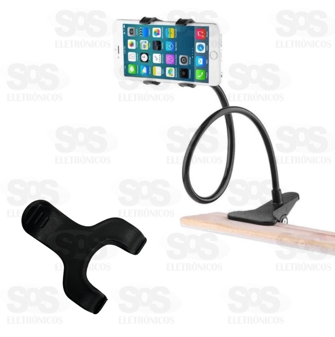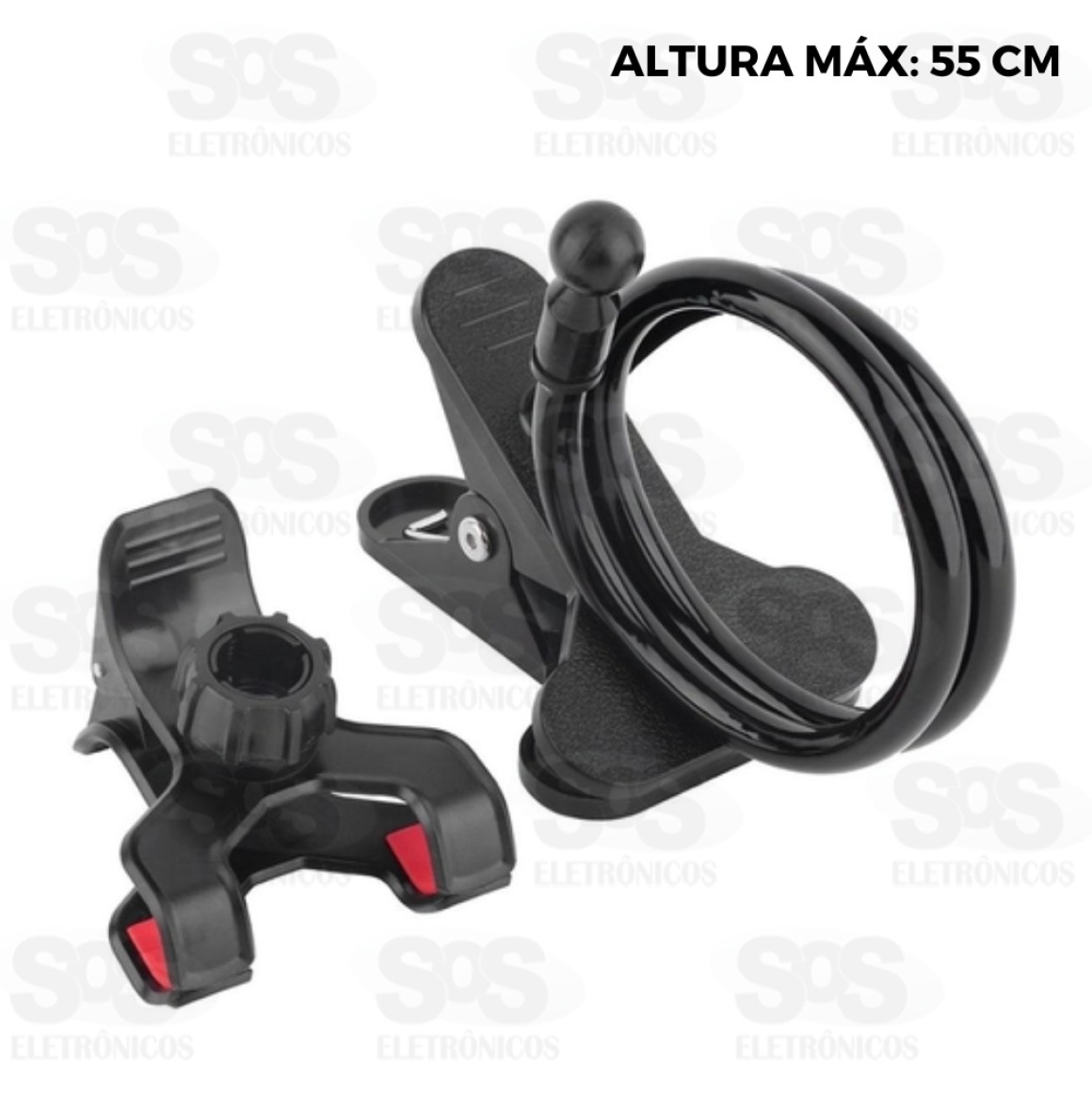 A garra para o celular abre até 13 cm