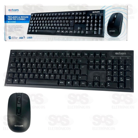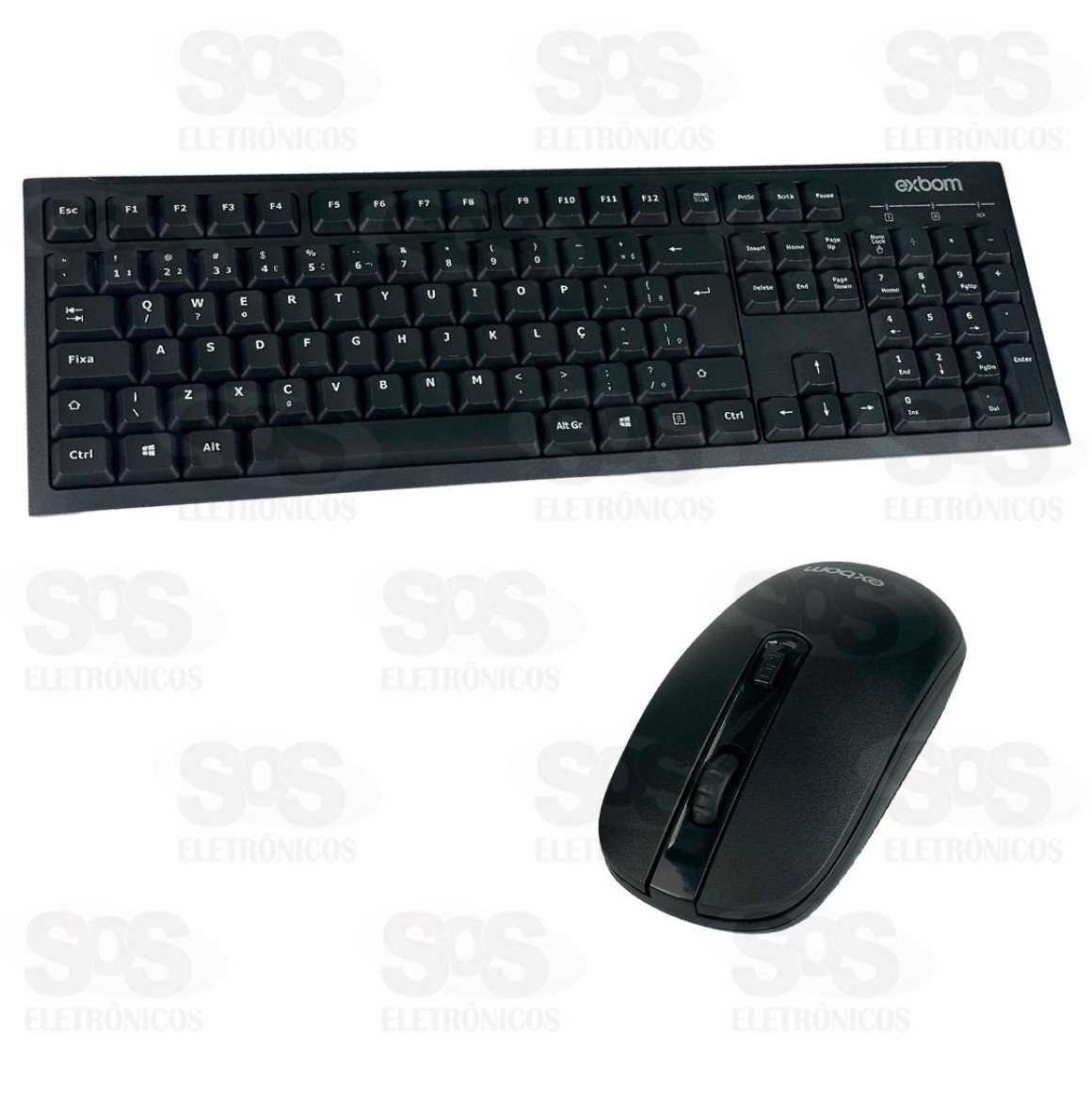 Kit Teclado e Mouse Sem Fio 2.4G Exbom BK-S1000K