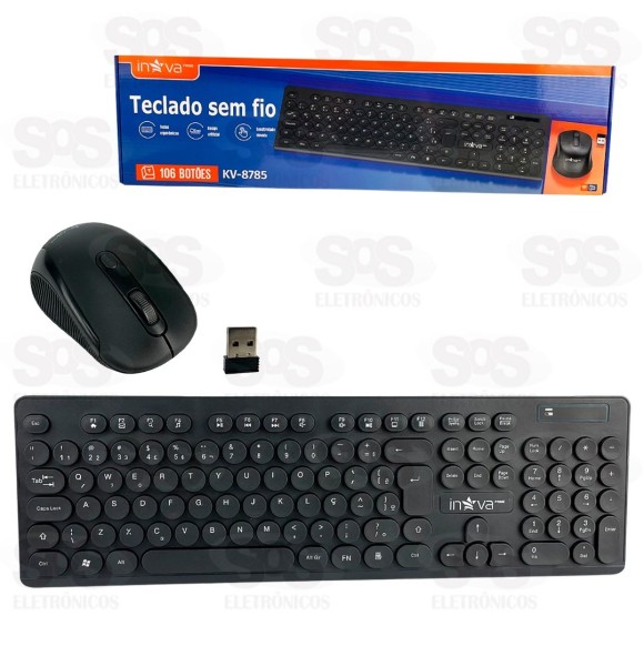 Kit Teclado e Mouse Sem Fio ABNT2 Inova Prime KV-8785