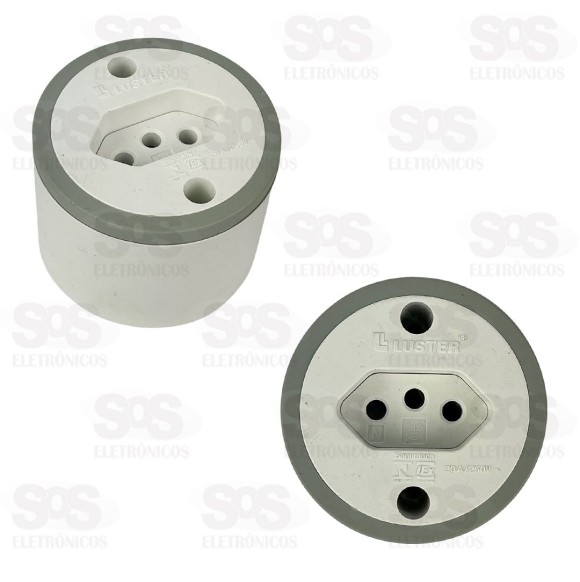 Tomada De Sobrepor 20A/250V Redonda 2P+T Branco E Cinza Luster 1086
