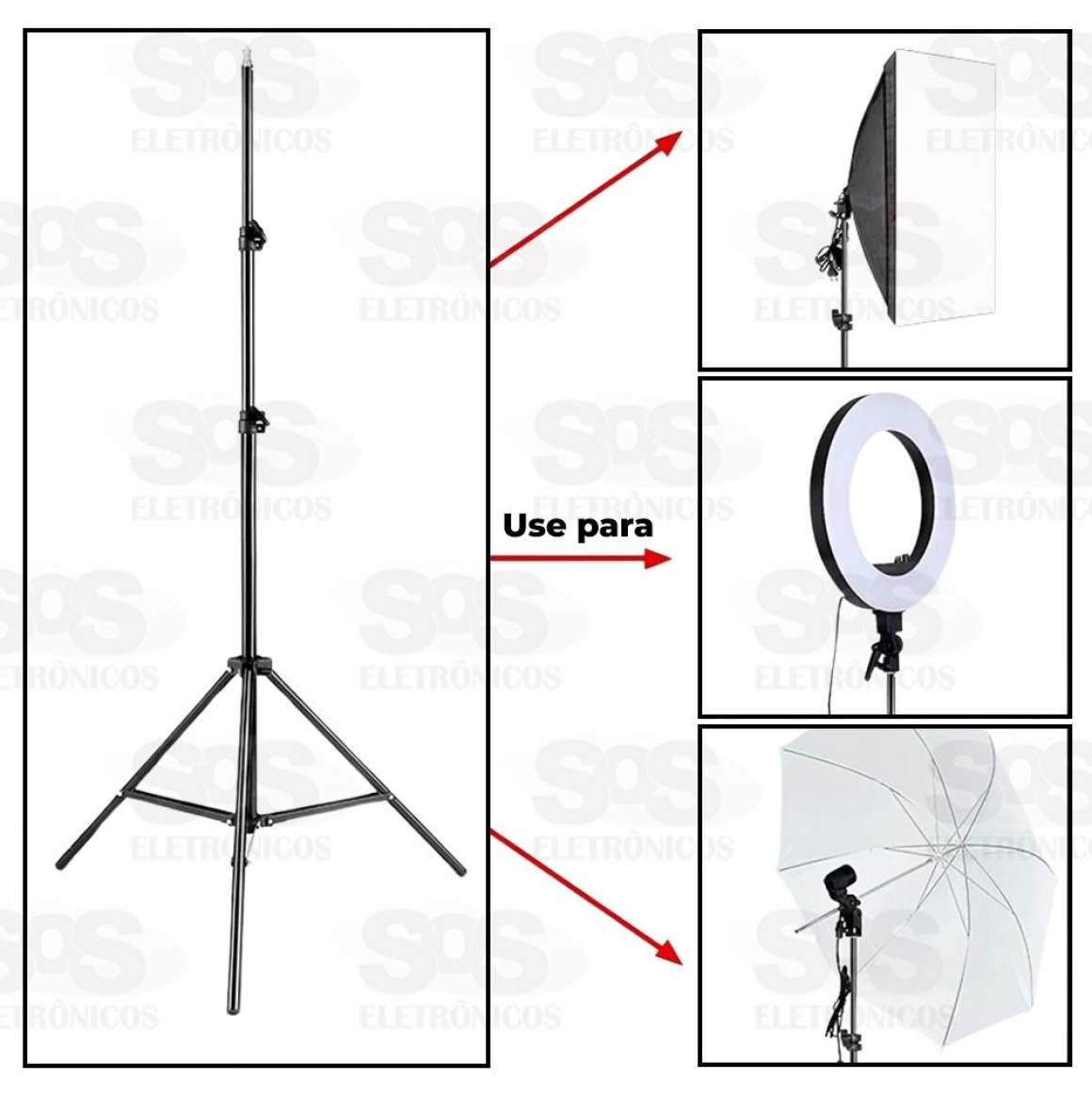 Compatível com ring light, holofotes led, câmeras, etc..